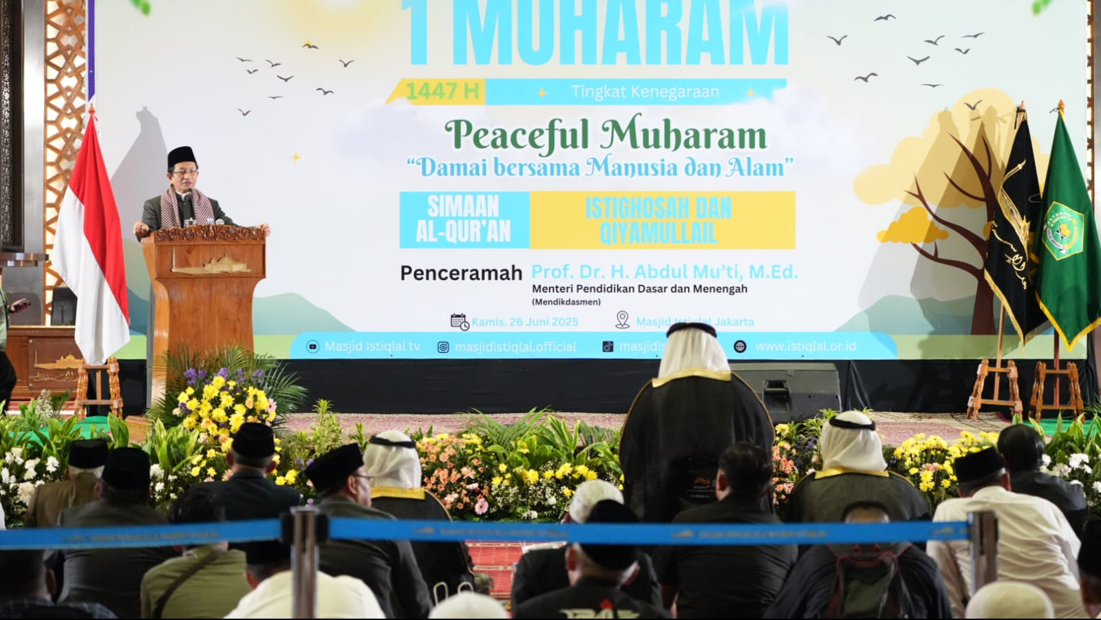 JAKARTA — Kementerian Agama (Kemenag) menggelar Peringatan 1 Muharam 1447 Hijriah Tingkat Kenegaraan di Masjid Istiqlal, Jakarta, Kamis, 26 Juni 2025 malam.